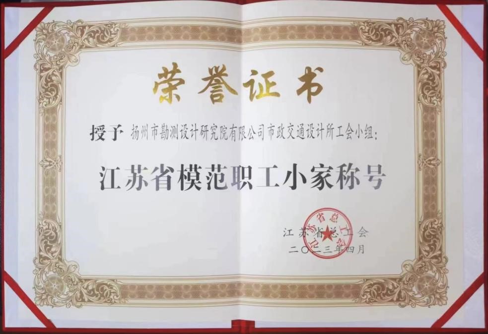 近日,江蘇省總工會(huì)印發(fā)《關(guān)于表彰江蘇省模范職工之家、模范職工小家、優(yōu)秀工會(huì)工作者的決定》,揚(yáng)州市勘測設(shè)計(jì)研究院有限公司市政交通設(shè)計(jì)所工會(huì)小組被江蘇省總工會(huì)授予“江蘇省模范職工之家”稱號(hào)。